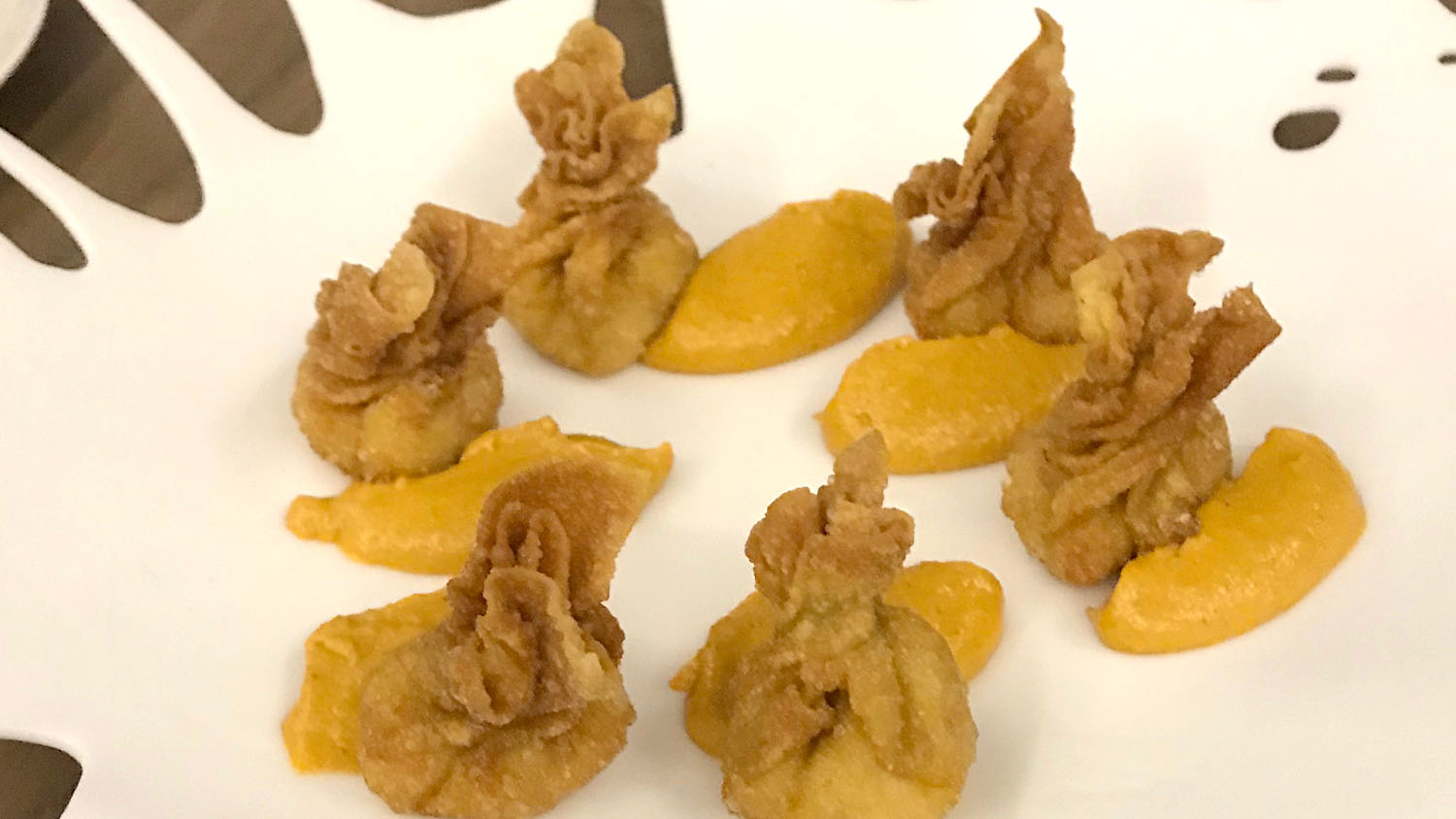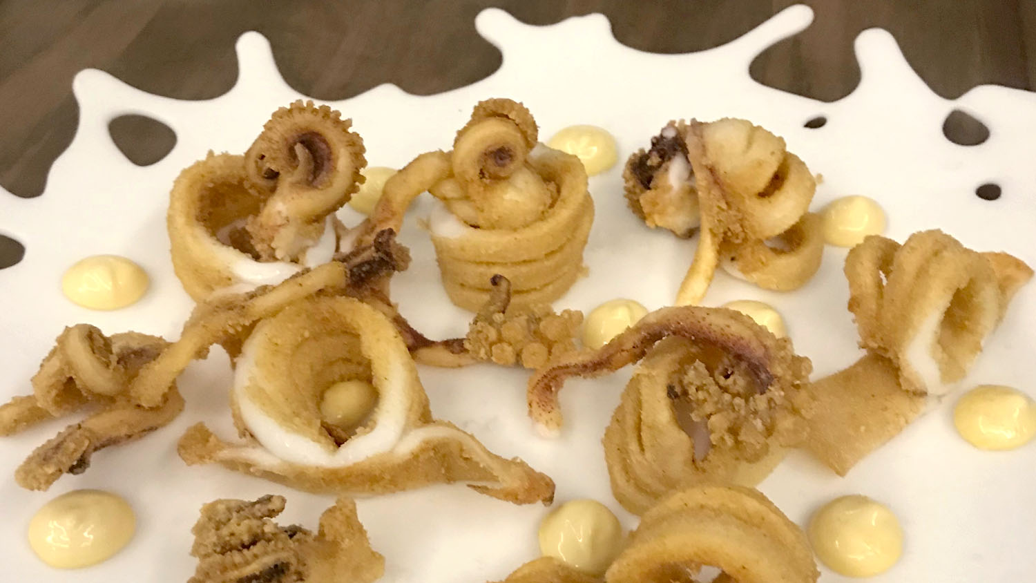 Nada más llegar al restaurante fuimos recibidos por el chef con una copa de cava de bienvenida y unos aperitivos consistentes en aceitunas con aceite en textura, una bandeja de quesos manchego y parmesano y unas croquetas de pollo rustido, aperitivos a cual más delicioso.