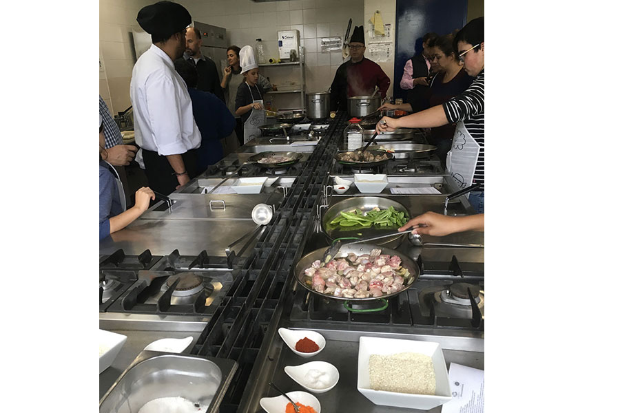 Y ya nos pusimos con la tarea, la elaboración de los arroces. Los niños estaban centrados en las explicaciones del profesor, con ganas de hacerlo ellos solos (esas ganas de ser independientes…!), responsables cada uno de lo suyo, lavándose las manos a cada poco, no manchando más de lo necesario o limpiando cuando debían… estábamos sorprendidos pero muy gratamente!
