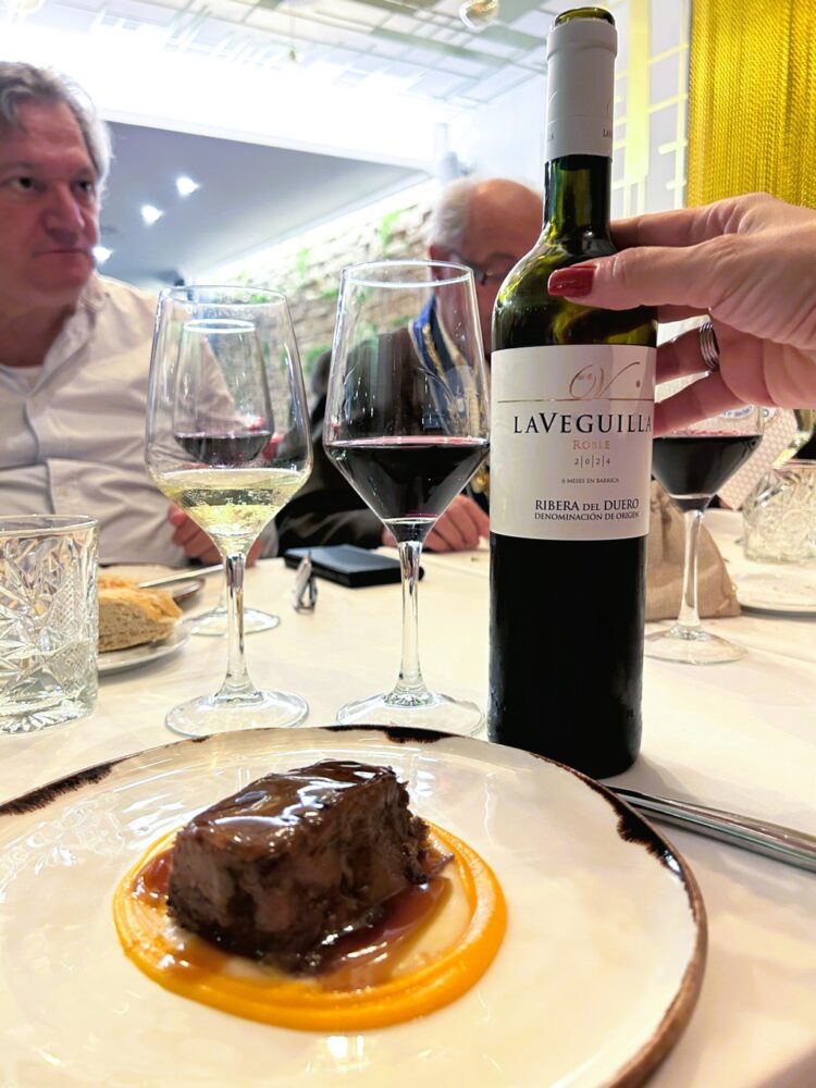 Como plato de carne se sirvió Taco de carrillera de vaca, boniato y chirivía armonizado con Tinto La Veguilla, de la D.O. Ribera del Duero